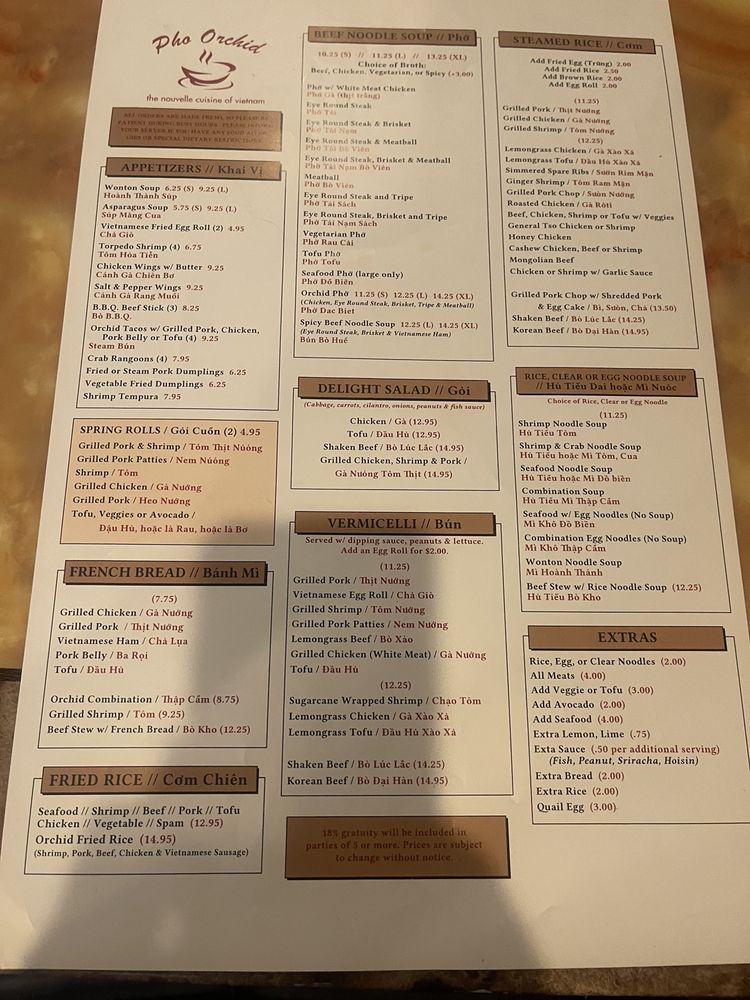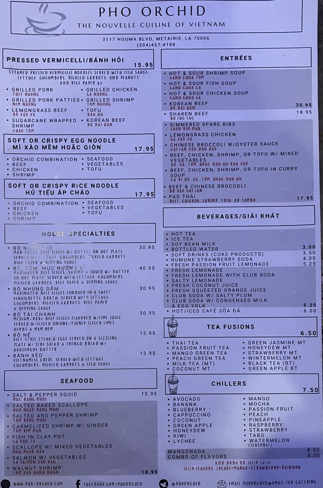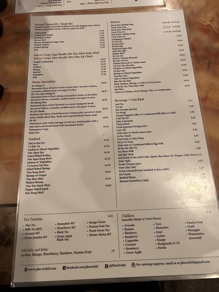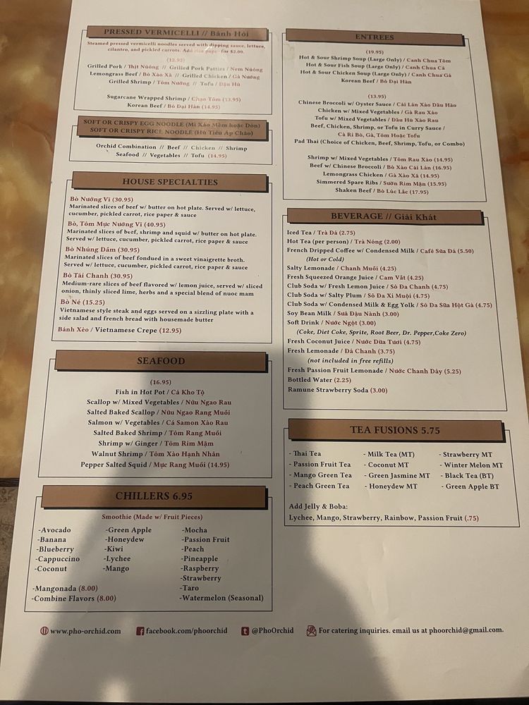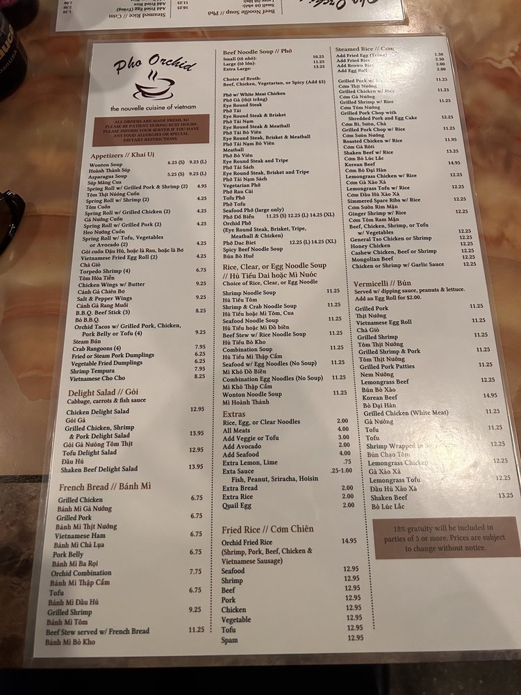The inviting ambiance, attentive service, and additional features such as outdoor seating and happy hour specials provide an ideal setting for both casual meals and special gatherings. Whether you’re a newcomer or a regular, Pho Orchid promises a dining experience that delights with every sip and bite.